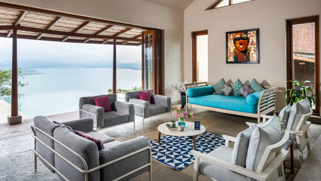 Hilltop villas offer a more dramatic setting, perched higher than most properties and offering sweeping views across the landscape. These stays feel especially atmospheric during the monsoon, when clouds drift past balconies and visibility changes by the hour.